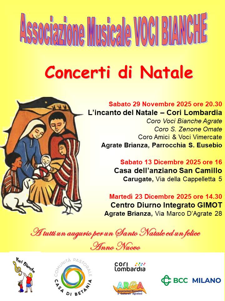 Siamo lieti di invitarvi ai Concerti di Natale dell’associazione Voci Bianche, un evento magico per celebrare insieme l’atmosfera del Natale.